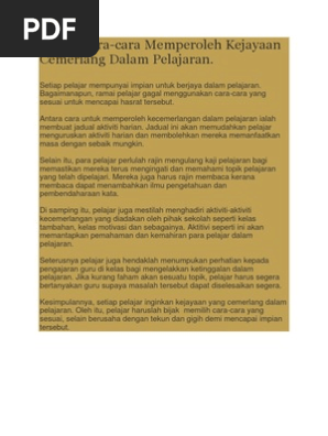 Cara Cara Memperoleh Kejayaan Cemerlang Dalam Pelajaran Pdf